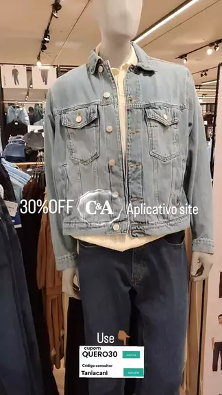 Desconto no aplicativo C&A 30% use meu código consultora Taniacani e cupom minha30
