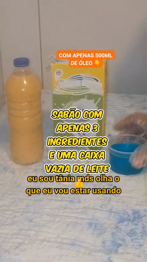 sabão Mine com 3 ingredientes e feito na caixa de leite vazia,vamos lá a receita ,500 ml de óleo usado+100 ml de soda líquida+100 ml de qualquer bactericida ,corante opcional #Ultra10kvis