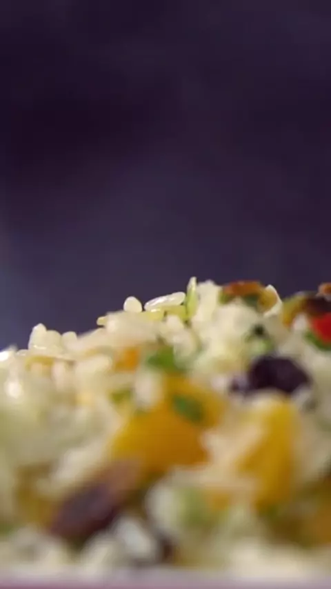 Arroz Natalino I Para acompanhar todas as delícias da ceia de Natal que tal uma receita fácil e gostosa de arroz? 🍚🎅🏻 INGREDIENTES 3 colheres de azeite de oliva 1 cebola picada 2 xícaras de arroz branco lavado e escorrido sal a gosto 3 xícaras de espumante 1 xícara de uva passa preta 1 xícara de damascos picados 3 pimentas dedo de moça sem sementes picadas ¼ de xícara de salsinha picada 1 xícara de amêndoas em lâminas tostadas #tastemadebr #receitas #receitanatalina #arroznatalino #natal