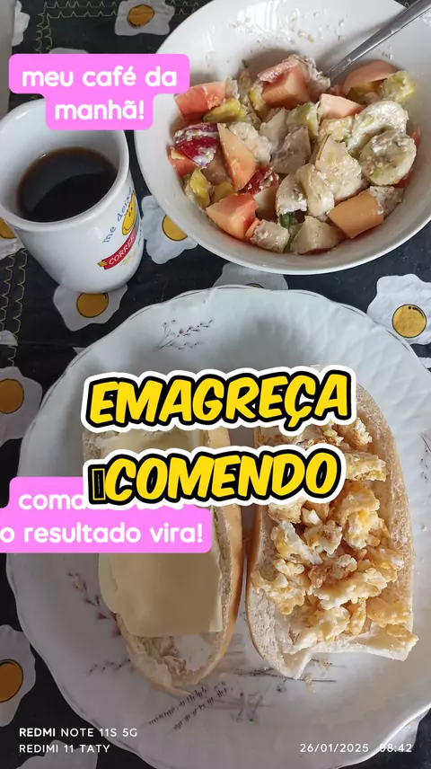 Exemplo d café da manha Pão com ovos mexidos + uma fatia de muçarela café sem açúcar e frutinhas ( maçã, mamão, banana, pera,abacate) com uma colher de sopa de farelo de aveia #emagreça #comidaboa #reeducacaoalimentar #Saúde