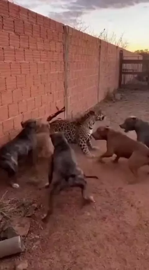 onça ficou presa no meio dos pitbulls #animais #Ultra10kvis # #kwai