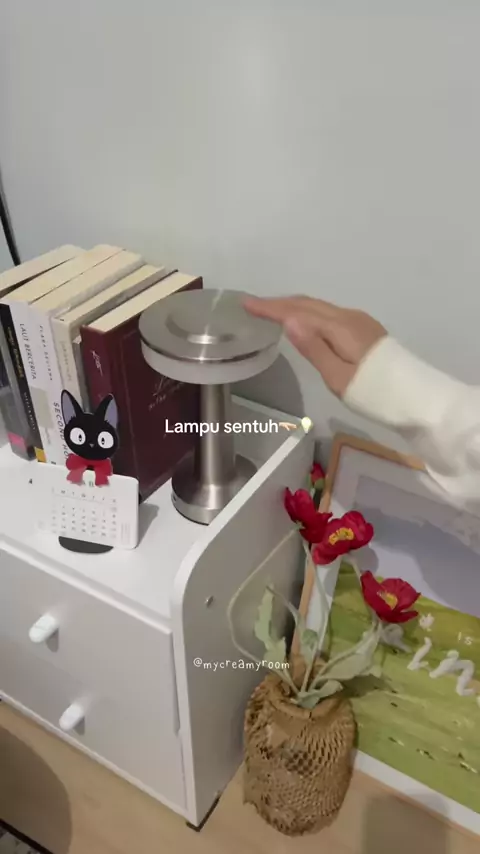 Replying to @ade ᐢ. ₓ .ᐢ lampu yang nyalainnya cuma di sentuh🤭 ada 3 warna lampu & bisa diatur juga kecerahannya💡 #roomdecor #roommakeover #lampuhias #lampuaesthetic #lamputidur