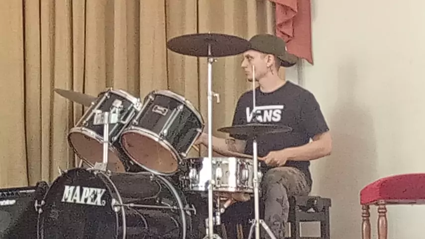Antes do Culto de Domingo , um pouco do ensaio para os louvores. Meu herdeiro em contato com Deus.