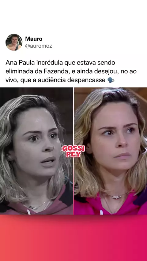 A eliminação de Ana Paula em ‘A Fazenda’ volta a repercutir nas redes sociais. A ex-BBB, ex-peoa e atual participante do ‘BBB 26’ ficou visivelmente chocada com o anúncio de sua saída e chegou a questionar Marcos Mion se a direção do programa estaria exibindo tudo o que realmente acontecia na casa, já que, para ela, parecia injusto deixar o reality diante dos acontecimentos na casa. #anapaula #bbb #afazenda #eliminada #eliminação