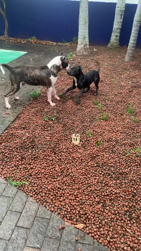 Lacan presa canรกrio 12 meses e Atena pitbull brincando