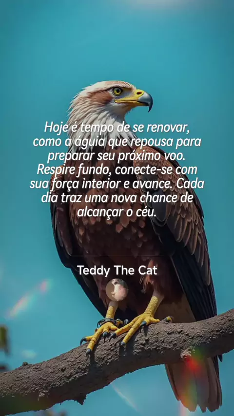 Crie um texto mensagem forte, de motivação e inspiração, que acalenta o leitor, ao fundo use de imagem uma águia em repouso num galho.