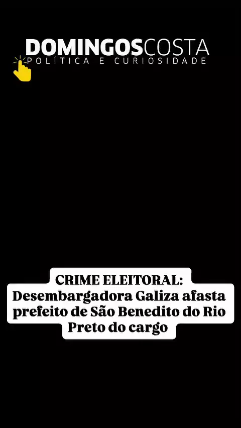 SEGUNDO AS INFORMAÇÕES DO BLOG DO DOMINGO COSTA O PREFEITO DE SÃO BENEDITO DO RÍO PRETO FOI AFASTADO PELA DESEMBARGADORA GALIZA POR CRIME ELEITORAL.