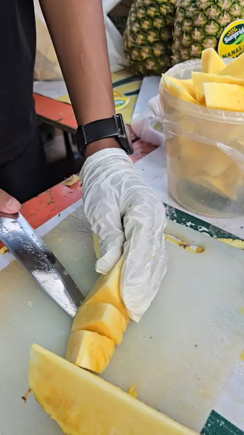 Kreatifitas cara potong nanas cepat di brigif 15 #food #foodie #kuliner #ideusaha #idejualan