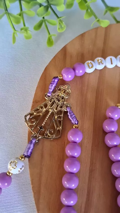 Presente que encanta e evangeliza 🙏🏽 Terço personalizado Nossa Senhora Aparecida 💜 📦 Encomendas via direct 🇧🇷 Envio para todo Brasil (frete a consultar) 🎁 Ótima opção de presente #terço #tercopersonalizado #igrejacatolica #catolicos #nossasenhoraaparecida