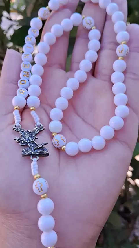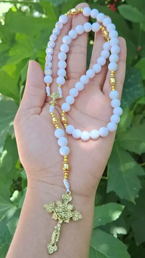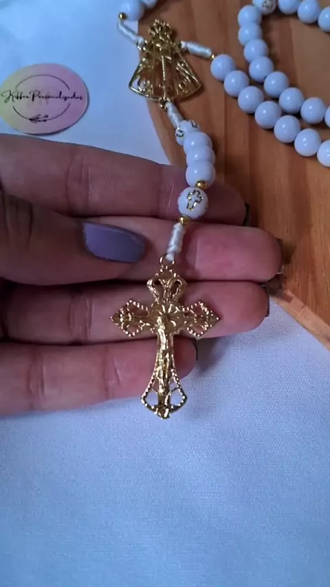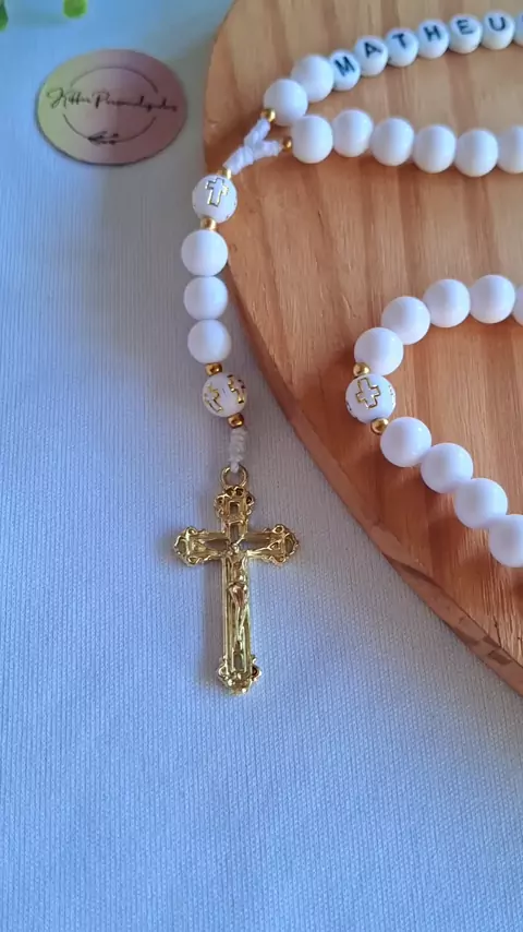 Terço personalizado 🤍 🚀 Envio para todo Brasil. Encomendas via direct #terço #tercopersonalizado #feitoamão #feitocomamor #catolicos