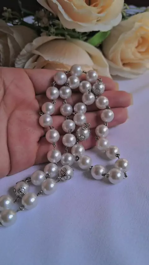 Terço de Noiva 🤍 ✨️ Um dia especial, merece um lindo terço ✨️ "O matrimônio é sempre um dom!" (Papa Francisco)  🤍 Nosso terço ✔️ Crucifixo em níquel com strass ✔️ Entremeio em níquel de Nossa Senhora Aparecida com strass ✔️ Contas em pérolas 10mm ✔️ Tulipas * Terços sob encomenda. Com várias opções para montar seu terço. ........................................... 🚀 Envio para todo Brasil. Encomendas via direct ...........................................