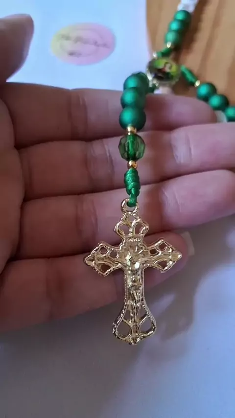 Terço personalizado Santa Luzia 💚 #terço #tercopersonalizado #santaluzia #catolicos #feitoamão
