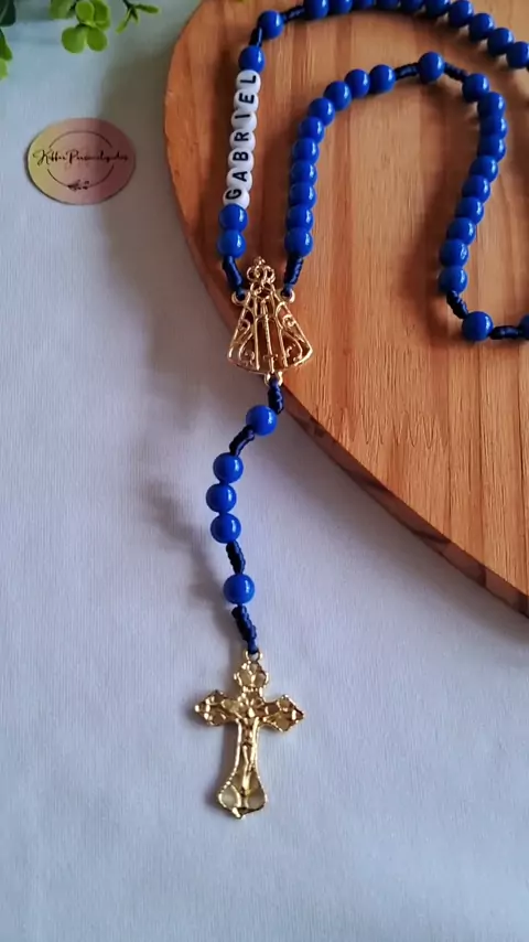 Terço personalizado Nossa Senhora Aparecida 💙 🎁 Presente de mãe para filho. Presente que encanta e evangeliza! #terço #tercopersonalizado #feitoamão #feitocomamor #nossasenhoraaparecida