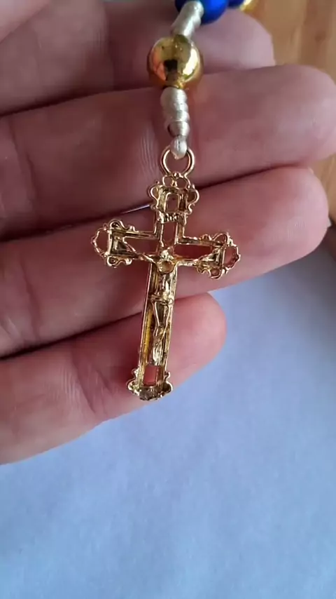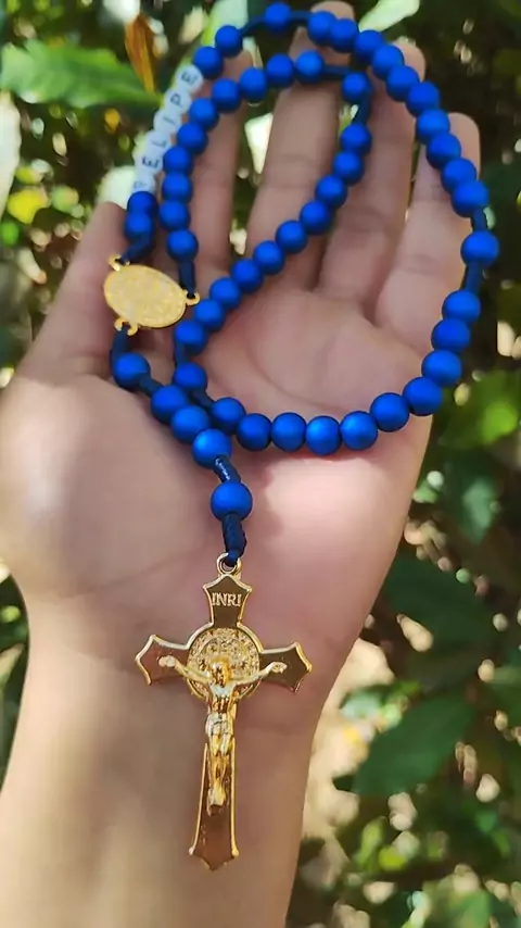 Terço personalizado Nossa Senhora Aparecida 💙 Esse foi presente de uma filha para sua mãe. Presente que encanta e evangeliza 🎁 ✨️ Detalhes do terço ✔️ Crucifixo banho dourado e entremeio de Nossa Senhora Aparecida ✔️ Contas das Ave Maria em bolas azul emborrachadas ✔️ Contas do Pai Nosso em bolas de cruz .............................................. Encomendas via direct 🚀 Envio para todo Brasil .............................................. Peças feitas a mão, com amor e devoção