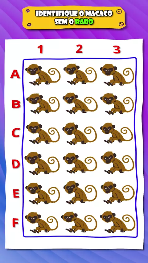 Desafie sua visão encontrando o macaco sem o rabo neste desafio visual #TesteDeVisão #testecognitivo