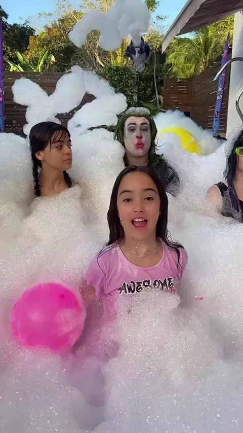 então mexe! enchemos nossa piscina com espuma no canal do @vinibug! 💖💜💛 #canaldabelinha