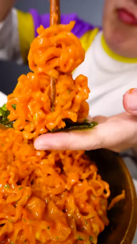 Spicy Noodles, Whole Bacon Funny Mukbang #먹방asmr #eatingsounds # #spicy #noodles #mukbang