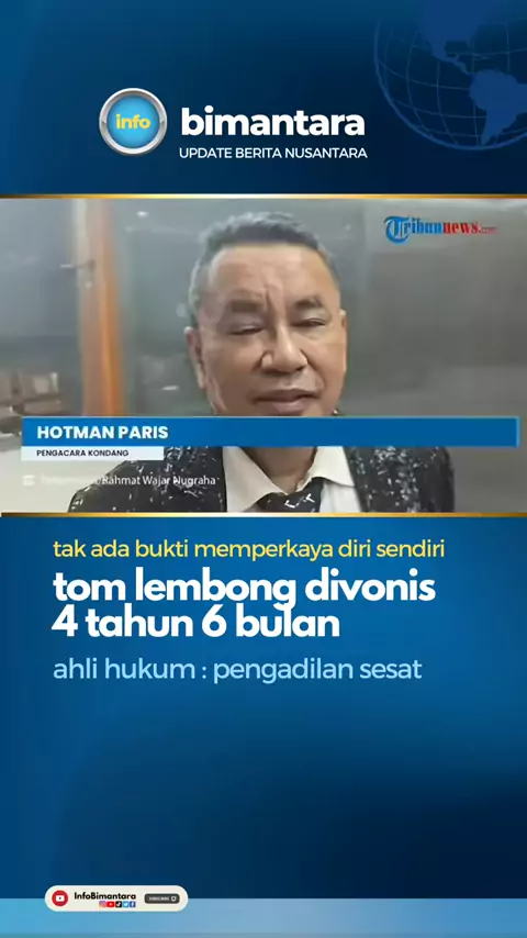 #tomlembong divonis 4 tahun 6 bulan, pakar hukum nilai sebagai #vonissesat karena tidak ada bukti, tidak ada aliran dana dan tidak ada unsur memperkaya diri sendiri #update #bimantara