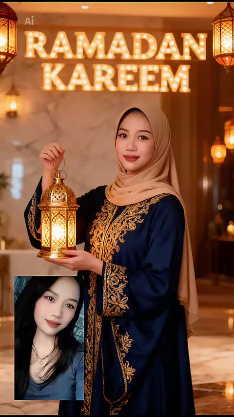 "Wanita Cantik Ai model." Promt : "A beautiful young woman walking confidently on a fashion runway, showcasing a luxurious floor-length evening gown made of shimmering silk and lace. The dress has intricate gold embroidery. Her posture is perfect, one hand on her hip, looking towards the camera with a slight smile. Intense stage spotlights, bokeh background with a blurred audience, cinematic atmosphere, 8k resolution, photorealistic." topcreator gala2026