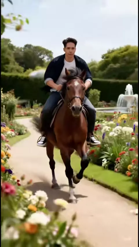 TopCreator gala2026 "Edit foto sio kuda api yang sedang berlari di tunggangi saya, tanpa merubah wajah aslinya, pakaian tetap di kenakan sesuai shio kuda api tahun cina, rasio aspek skala 9:16, Pencahayaan sinematik malam hari agar terlihat kuda api menyala, , menambah kesan dramatis, kamera 35mm ultra-detail." Pakaian & Atribut: Karakter mengenakan jubah tradisional berwarna merah tua dengan ornamen emas yang melambangkan kemakmuran. Visual Kuda Api: Kuda digambarkan seb...