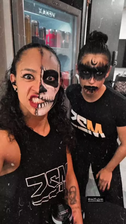#tbt do Halloween na @m25.gym com @zayaalline @leandrovianapersonal Gostosuras ou travessuras? 🎃 🦇🖤 #halloween #ridelikeagirl #bikeindoor #fun