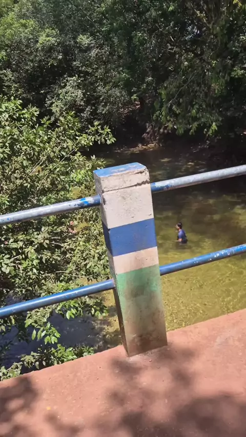 Em Morros é assim: a gente pula da ponte e chega na barraca nadando! 😅 O rio é tão bonito que até esqueci do caminho pela estrada. #Banho #rio