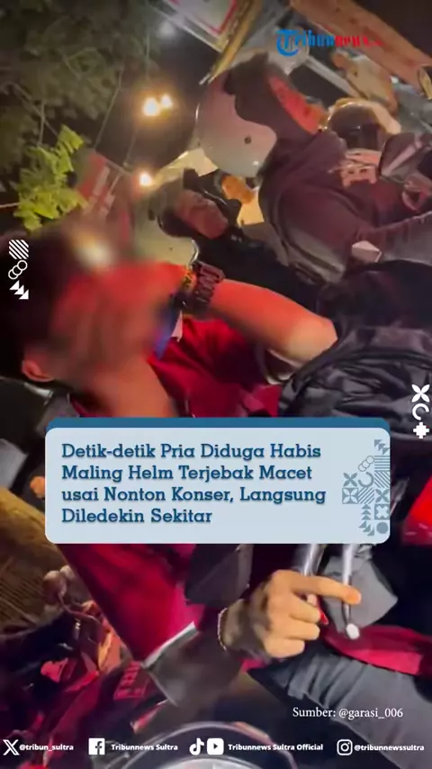 Momen seorang pemuda yang diduga habis maling helm setelah nonton konser disoraki oleh warga sekitar saat terjebak macet viral di media sosial. Video tersebut diunggah akun @garasi_006. "viral aksi maling helm ketahuan yang punya helm karena macet saat closhing konser dan akhirnya di bully habis²an sama semua orang di tempat," tulis pemilik akun. #tribunsultra #tribunnewssultra cr. @garasi_006