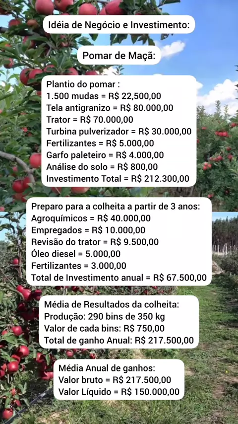 idéia de negócio e investimento, pomar de maçã