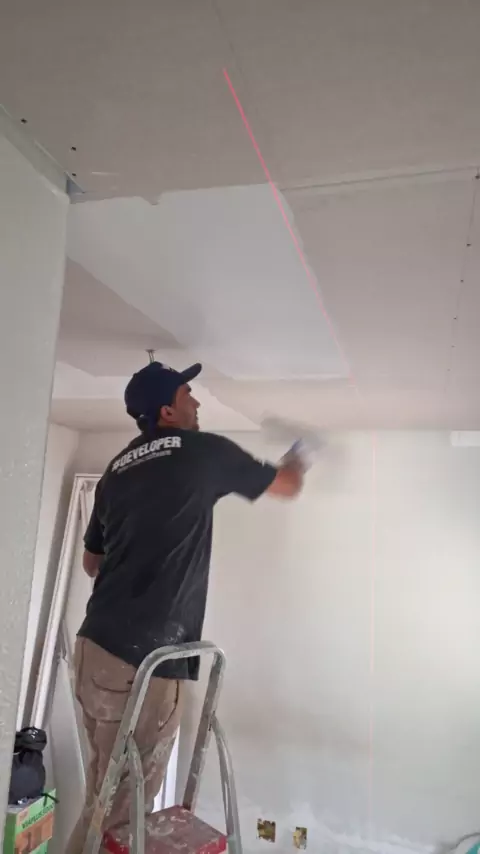 tratamento de juntas de topo de drywall, o leise foi só coincidência devido marcação de uma parede no outro ambiente. #drywall #obra