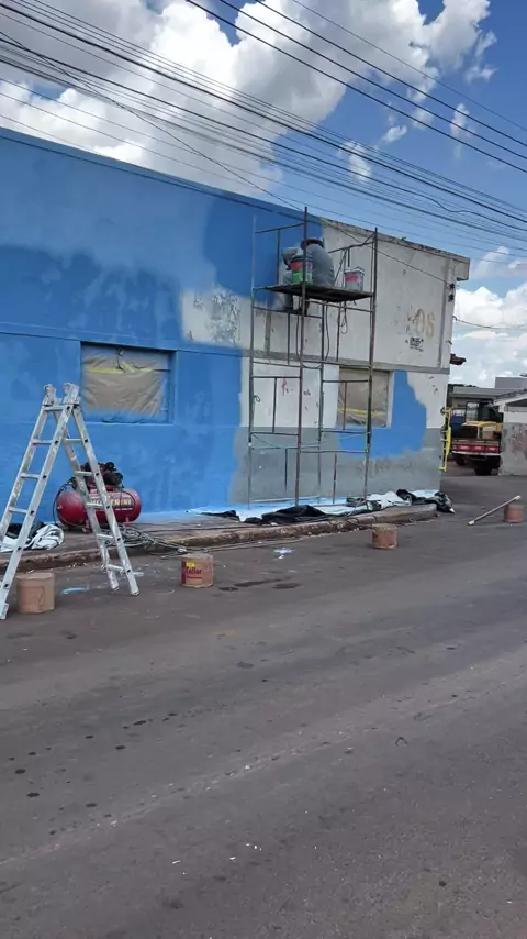 “Seguimos firmes na aplicação da textura projetada na Secretaria de Obras! 💪✨ Agora avançamos para a parte mais baixa da fachada, garantindo o mesmo padrão de qualidade, resistência e acabamento uniforme que o prédio merece. Cada etapa executada com cuidado para entregar um resultado durável e impecável! #TexturaProjetada #PinturaProfissional #ThiagoDiasPintor #Obras #AcabamentoPerfeito”