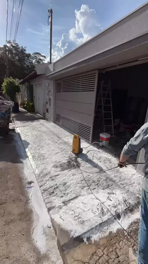 Etapa essencial para um bom resultado! Antes da aplicação da resina em pedras de calçada, é fundamental realizar uma preparação adequada da superfície. 💪 Primeiro, fazemos uma limpeza profunda com hidrojateamento, removendo sujeiras, resíduos e impurezas. Em seguida, aplicamos um ácido específico, que além de limpar profundamente, cria uma superfície com melhor ancoragem, garantindo maior aderência e durabilidade da resina. ✅ Técnica e preparo fazem toda a diferença no resultado final! #Prep