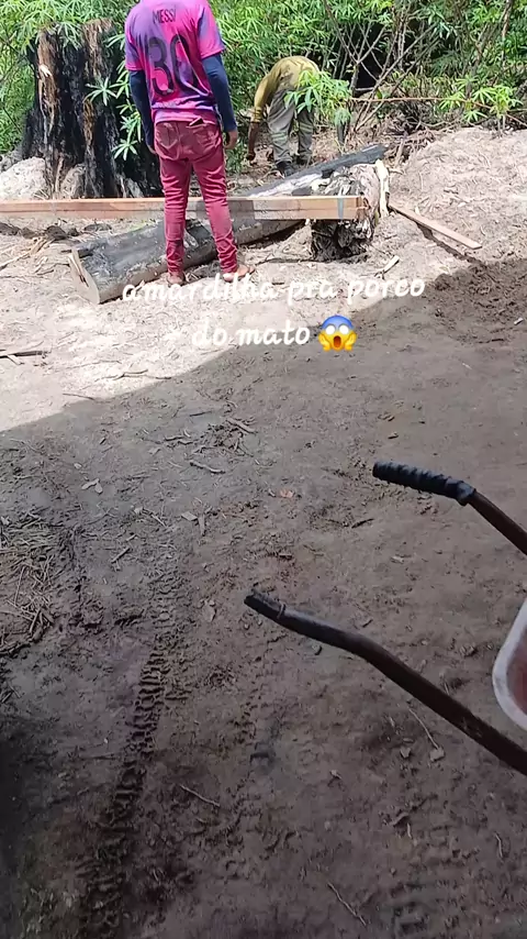 tentando pegar um porco que fica comendo a roça de mandioca