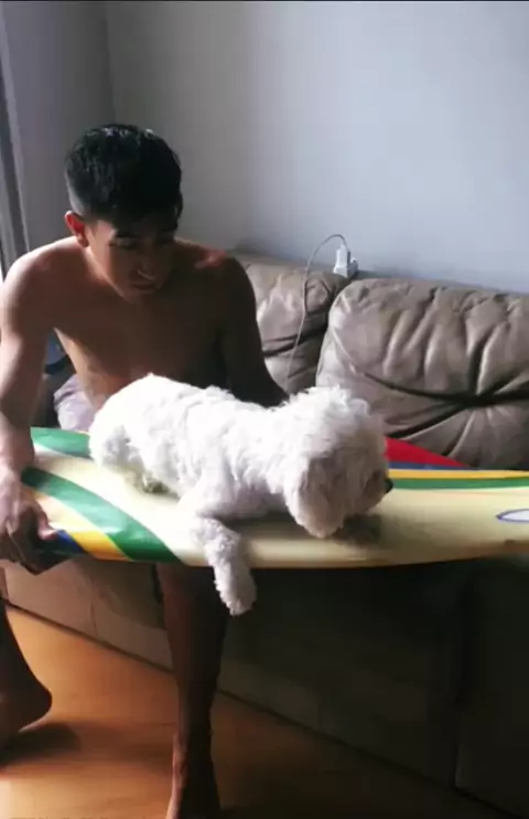 Surf dog kkkkkk! Deixe seu ❤ e compartilhe. #surf #cachorro