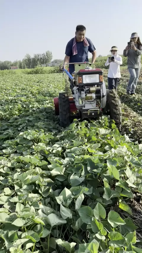 Tratores ambulantes trazem mudas de batata-doce máquina de matar.