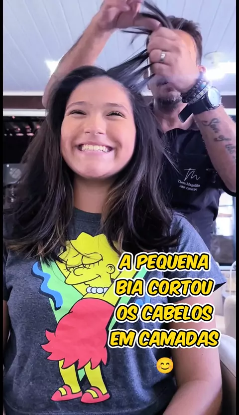 "A pequena Bia me pediu um corte em camadas, e além de entregar um visual moderno, revitalizamos os fios com um tratamento de brilho poderoso! Resultado deslumbrante ✨. Confira o antes e depois desse cabelo transformado. By Thom Magalhães Hair Concept. ❤️Curta 🗣️Comenta 🔊Compartilha e 🏃Siga para mais conteúdos de valor!" #CorteEmCamadas #CabeloSaudável #BelezaEmFoco #TransformaçãoCapilar #BrilhoIntenso