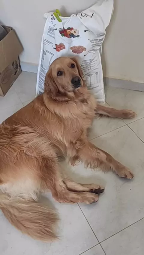 Nala ficou tão feliz com a sua ração que simplesmente não quer sair do lado dela!🐕😂 #golden #goldenretriver #BioFresh #dog