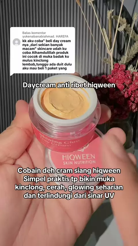 Membalas @yukenabanabiahmad. HAREFA emang mantul cream siang hiqween , muka terlindungi dari sinar uv, cerah glowing seharian #daycream #hiqween #creamflekhitam #creamglowing #creampencerah