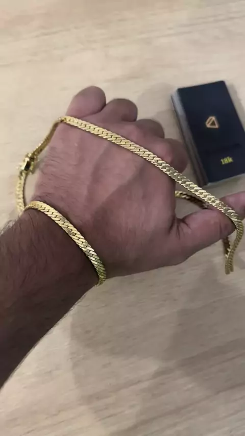 Qualidade que IMPRESSIONA! Bracelete liso 14MM e Pulseira Grumet 13MM 🤩Luxo autêntico, acabamento premium idêntico ao Ouro18k! 🔱✨ Se você gosta de impacto, esse kit é pra você! #semijoiasmasculinas #semijoiasde #grumet #pulseiramasc #luxomasculino