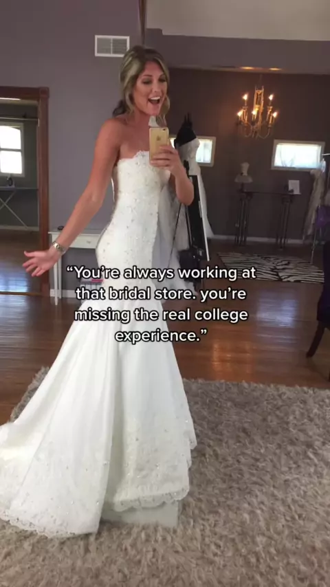Mas uma parte de mim sempre soube que o vestido de noiva era para mim ✨ tão feliz que eu fiquei com ele!! # bridalfashion # weddingfashion # collegeglowup # dreamjob!