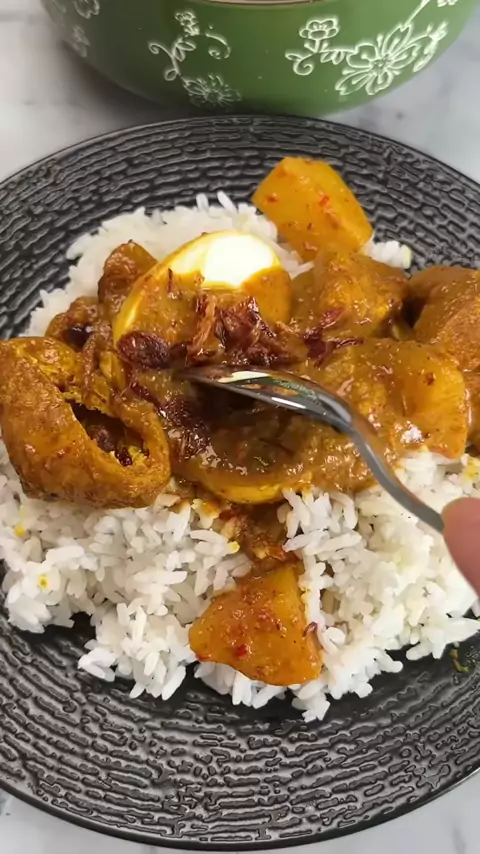 Kari telur 🥘🥰 Gurih, creamy, comforting. wajib pake santan MamaKoKo! Gas recook sekarang juga~#alexcooks Bahan: 10 telur 2 kentang, potong 5 tahu pong (opsional) 10 bawang merah, iris tipis 1 sdt kari bubuk 1 batang sereh 3 daun salam 4 daun jeruk 600 ml air 1 bungkus Santan Mama Koko Garam Gula Lada Kaldu bubuk Minyak goreng secukupnya Bumbu halus: 12 bawang merah 5 bawang putih 10 cabe keriting 5 cabe rawit 2 telunjuk kunyit 2 cm jahe 1 sdt jinten 1 sdt ketumbar 5 kemiri Cara membuat: 1. ...
