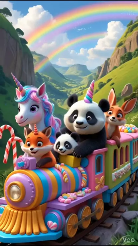 Unicórnio, panda e amigos em uma aventura incrível rumo à cidade dos doces! 🦄🐼🌈 Comenta quem é seu personagem favorito! ❤️#kids #TremDeDoces #Animação #FYP #Viral