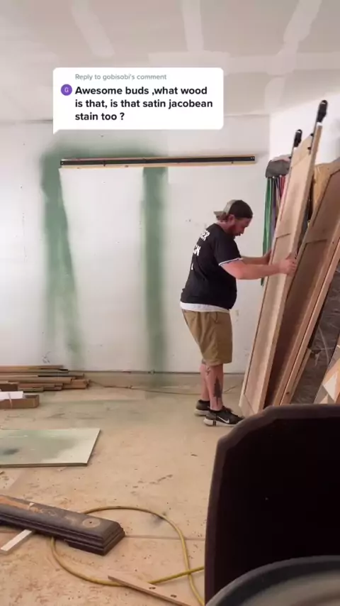 Reply to it 's Knotty Alder, & I did use jacobean ✌ # gerberdesignco # barndoor # slidingdoors # farmhouse # rústico # DealGuesser # DIY