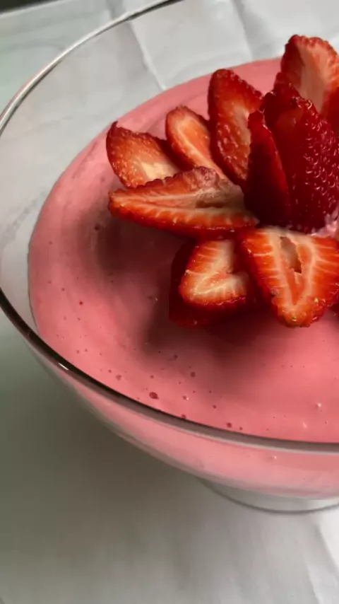 Danone caseiro de morango Ingredientes: 2 caixinhas de leite condensado 2 caixinhas de creme de leite 2 copos de iogurte natural 1 pacote de suco de morango #sobremesas #Receita #Receitasfacil #morango #sobremesasimples