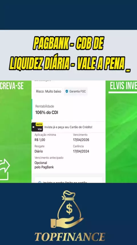 PAGBANK - CDB DE LIQUIDEZ DIÁRIA - VALE A PENA _ #financas #investimentos #investir #dinheiro #fy