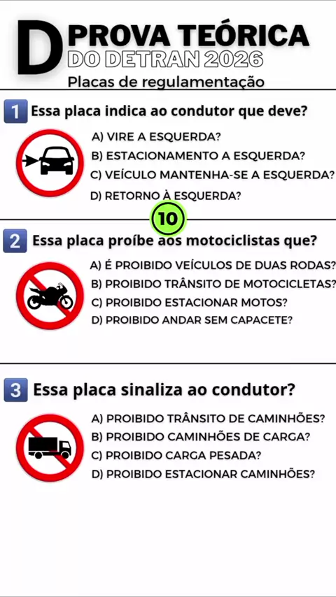Atenção, próxima prova do DETRAN. #quiz #dicas #provateoricadodetran #provadodetran #placasdesinalizacao