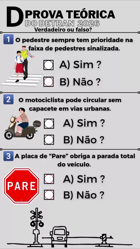 qual é sua opinião. simulado detran prova teórica 2026. #habilitação #perguntaserespostas #curiosidades #cnh #provateoricadodetran