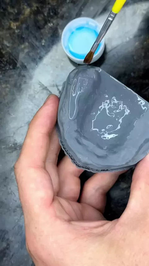 Assim que eu faço minhas veias ficarem tão naturais! Basta usar lã (cor da sua preferência) no fundo de sulco sentido vertical! Dica extra: passo um pouco (bem pouco) de vaselina sólida na muralha antes de posicionar a veia pra ajudar grudar ela na posição que eu quero! #protesedentaria #protese #tpd #odonto #protesetotal