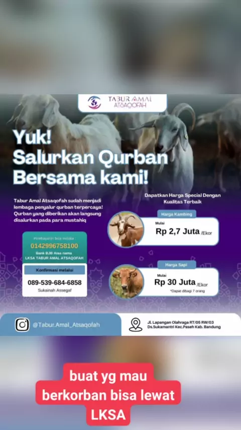 #keluargasnack #tabur kebajikan lewat qur'ban bersama LkSA Atsaqofah.. Monggo ibu /BP yg mau berqurban BS di sini..berbagi buat kaum dhuafa...SMG amal ibadahvmenjadi bekal kelak di youmil akhir...