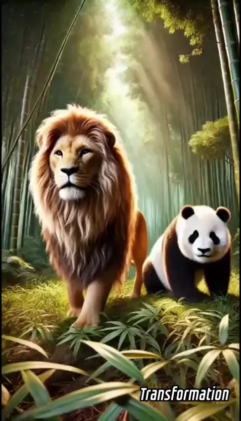 leão e panda fusão #Leão #fusion #transformation #ursopanda