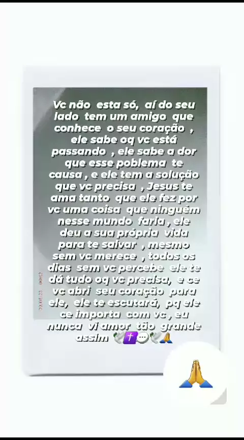coragem, pq aí do seu lado existe um verdadeiro amigo que te ama muito , o amor que ele tem por vc e tão grande que ele deu a sua própria vida para salvar vc de um sofrimento eterno , que vc iria sofrer , quando tu chora ele enchuga as suas lágrimas , e hj ele quer te escutar , abra seu coração para ele , diga tudo que vc está passando , que ele te escutará, e ce tu tiver fé, ele fala o impossível ce torna possível pra vc #JESUS #AMA #VC #musica #Gospel